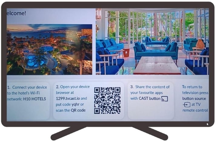 Dadurch können unsere Gäste ihre persönlichen Apps und Inhalte auf dem großen Bildschirm im Zimmer genießen.